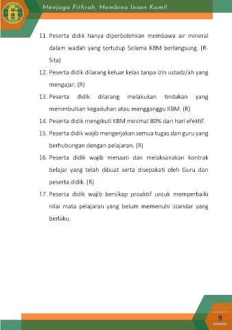 11. Peserta didik hanya diperbolehkan membawa air mineral