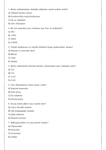 1. Moda endüstrisinin ekolojik yükünün temel nedeni nedir?