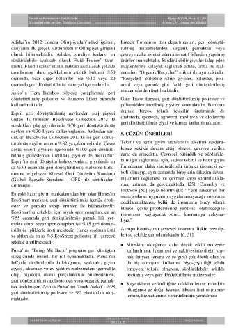rülmüş poliesterden üretilmiş giysiler de mevcuttur. zarar da artacaktır. Çevresel bütünlük ve sürdürüle-