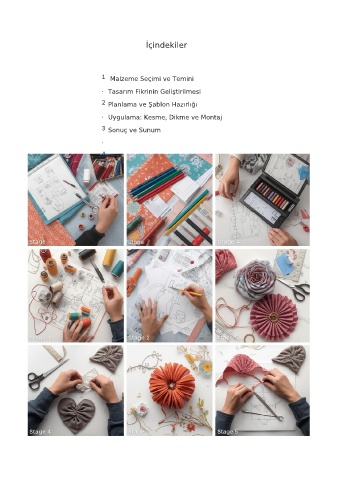 İçindekiler 1 Malzeme Seçimi ve Temini . Tasarım Fikrinin Geliştirilmesi 2 Planlama ve Şablon Hazırlığı . Uygulama: Kesme, Dikme ve Montaj 3 Sonuç ve Sunum . 4 . 5 .