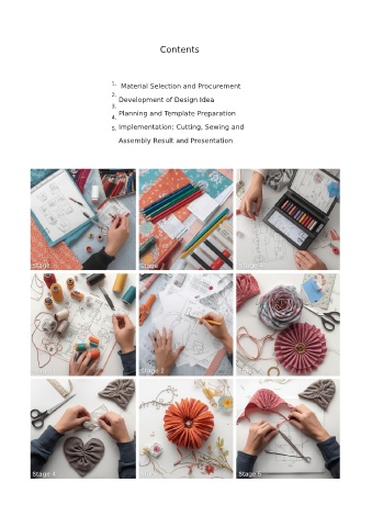 Contents 1. Material Selection and Procurement 2. Development of Design Idea 3. Planning and Template Preparation 4. 5. Implementation: Cutting, Sewing and Assembly Result and Presentation