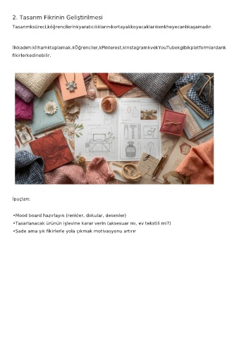 •Mood board hazırlayın (renkler, dokular, desenler)