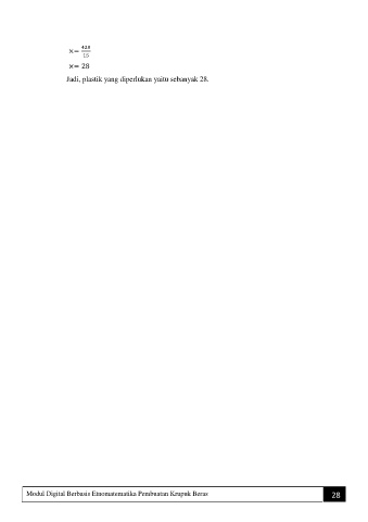 420 ×= 15 ×= 28 Jadi, plastik yang diperlukan yaitu sebanyak 28. Modul Digital Berbasis Etnomatematika Pembuatan Krupuk Beras 28