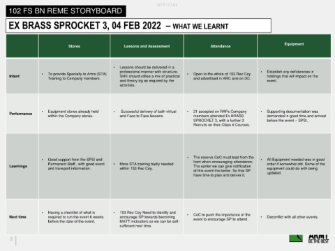 EX BRASS SPROCKET 3, 04 FEB 2022  – WHAT WE LEARNT