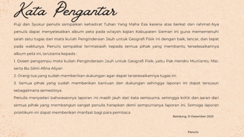 penulis dapat menyelesaikan album peta pada wilayah kajian Kabupaten Sleman ini guna mememenuhi