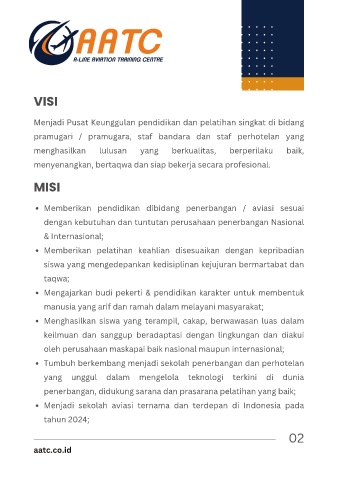 Menjadi sekolah aviasi ternama dan terdepan di Indonesia pada