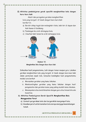 2) Aktivitas pembelajaran gerak spesifik menghentikan bola dengan