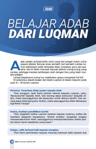 Di antaranya dapat belajar dari kisah Luqman di dalam Alquran pada