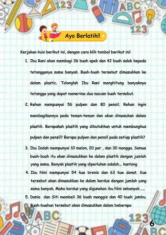 5. Dania dan Siti membeli 36 buah manggis dan 40 buah jambu.