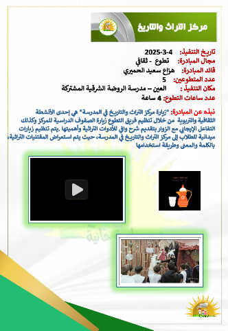 ةطشنمأا ىدحإ ه       " ةسردملا ف خ    يراتلاو ثايلا زكرم ةرايز "  : ةردابملا نع هذبن