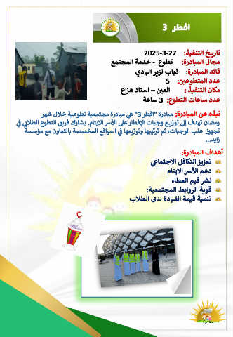 رهش للاخ ةيعوطت ةيعمتجم ةردابم ه            " 3  رطفا "  ةردابم  : ةردابملا نع هذبن