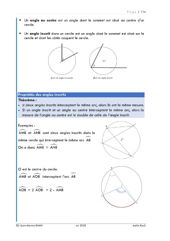 • Si un angle inscrit et un angle au centre interceptent le même arc, alors la