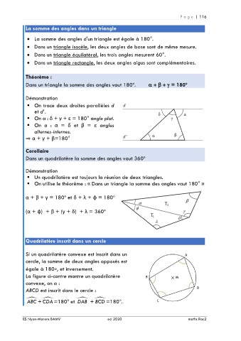 cercle, la somme de deux angles opposés est