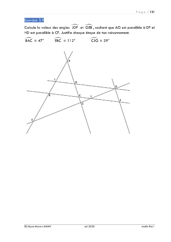 Calcule la valeur des angles JDF et GEB , sachant que AG est parallèle à DF et