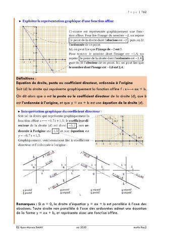 Equation de droite, pente ou coefficient directeur, ordonnée à l’origine