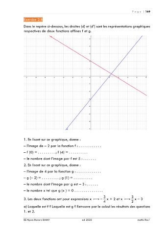 Dans le repère ci-dessous, les droites (d) et (d’) sont les représentations graphiques