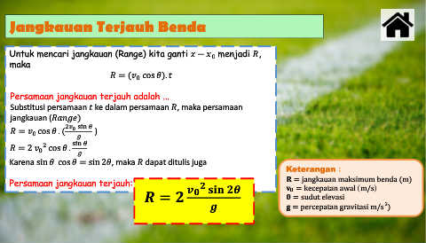 Persamaan jangkauan terjauh: = kecepatan awal m/s