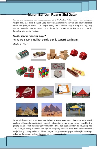 Kelompok bangun ruang sisi datar adalah bangun ruang yang sisinya berbentuk datar (tidak