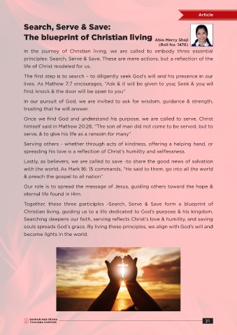 principles: Search, Serve & Save. These are mere actions, but a reflection of the