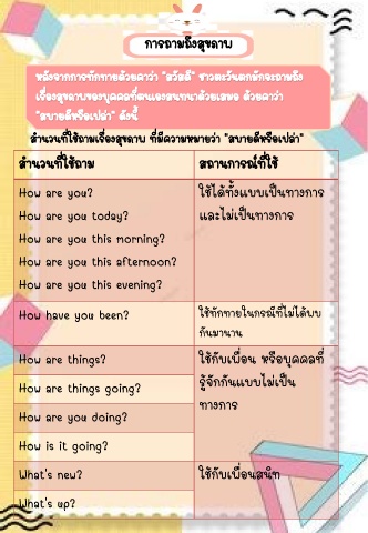 How are you? 㪌䴌·Ñé§áººà»š¹·Ò§¡ÒÃ