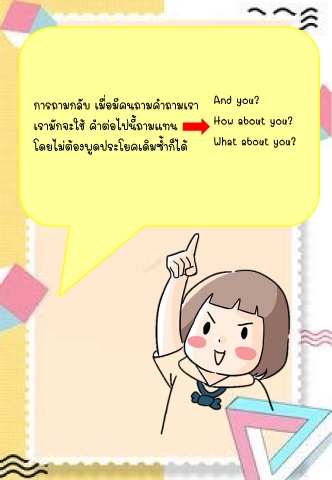 è ¡ÒöÒÁ¡ÅѺ àÁ×ÍÁÕ¤¹¶ÒÁ¤íÒ¶ÒÁàÃÒ And you? àÃÒÁÑ¡¨Ð㪌 ¤íÒµ‹Í仹Õé¶ÒÁá·¹ How about you? â´ÂäÁ‹µŒÍ§¾Ù´»ÃÐâ¤à´ÔÁ«éíÒ¡çä´ Œ What about you?