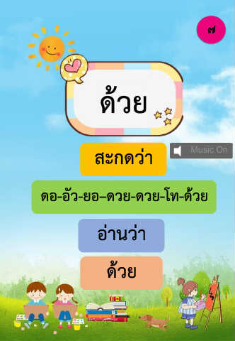 ๗ ด้วย สะกดว่า ดอ-อัว-ยอ–ดวย-ดวย-โท-ด้วย อ่านว่า ด้วย