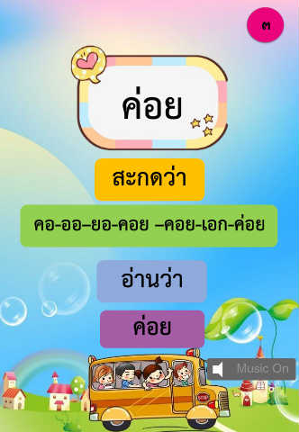 ๓ ค่อย สะกดว่า คอ-ออ–ยอ-คอย –คอย-เอก-ค่อย อ่านว่า ค่อย
