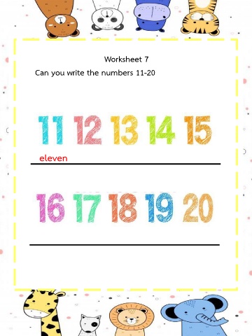 Worksheet 7 Can you write the numbers 11-20 eleven