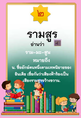 ๒ รามสูร อานวา ราม-มะ-สูน หมายถง ึ ื น. ช่อยักษตนหน่งตามเทพนยายของ ิ ึ ี ี อินเดย เช่อกันวาเสยงฟารองเปน ื เสยงรามสูรขวางขวาน. ี