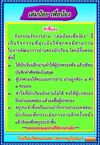 ฝึกอ่านจนคล่อง แล้วลงชื่อผู้ปกครอง