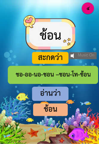 ๔ ช้อน สะกดว่า ชอ-ออ-นอ-ชอน –ชอน-โท-ช้อน อ่านว่า ช้อน