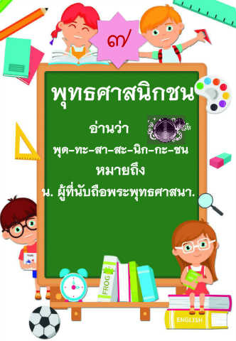 ๗ พุทธศาสนิกชน อานวา พุด-ทะ-สา-สะ-นิก-กะ-ชน หมายถง ึ น. ผูท่นับถือพระพุทธศาสนา. ี