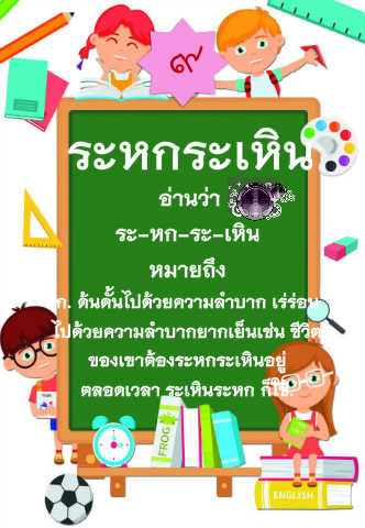 ๙ ระหกระเหิน อานวา ระ-หก-ระ-เหน ิ ึ หมายถง ก. ดนดั้นไปดวยความลําบาก เรรอน ิ ี ไปดวยความลําบากยากเย็นเชน ชวต ของเขาตองระหกระเหนอยู ิ ตลอดเวลา ระเหนระหก ก็ใช. ิ