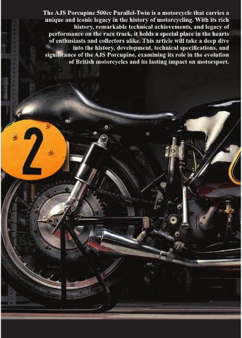 The AJS Porcupine 500cc Parallel-Twin is a motorcycle that carries a