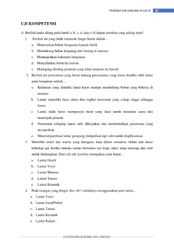 2. Berikut ini pernyataan yang benar tentang persyaratan yang harus dimiliki oleh lantai