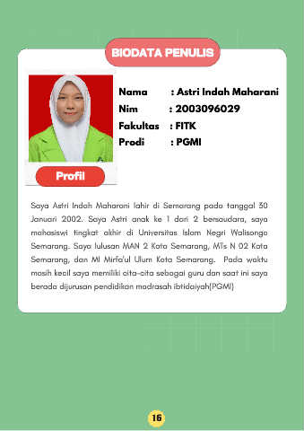 mahasiswi tingkat akhir di Universitas Islam Negri Walisongo