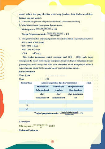 materi, melalui skor yang diberikan untuk setiap jawaban. Anda diminta melakukan