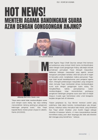 pemaknaan pernyataan Yaqut ditengah masyarakat.