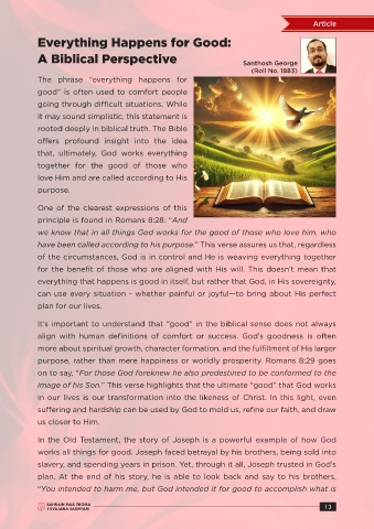 purpose, rather than mere happiness or worldly prosperity. Romans 8:29 goes