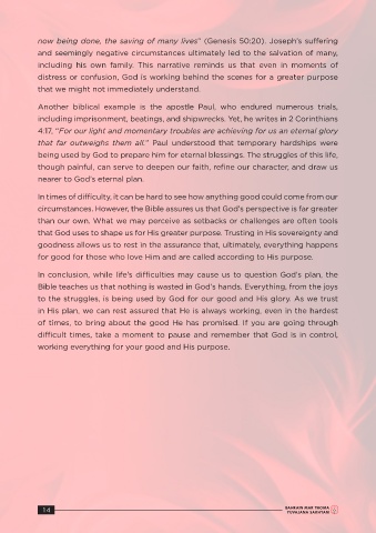 now being done, the saving of many lives” (Genesis 50:20). Joseph’s suffering