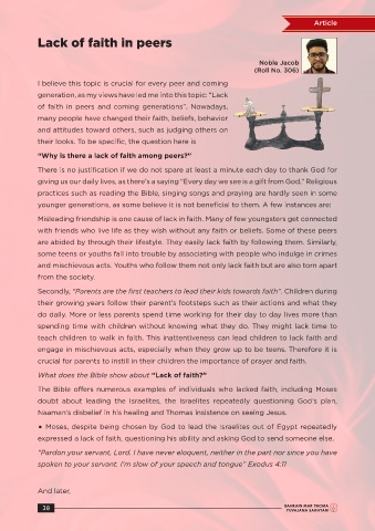 “Why is there a lack of faith among peers?”
