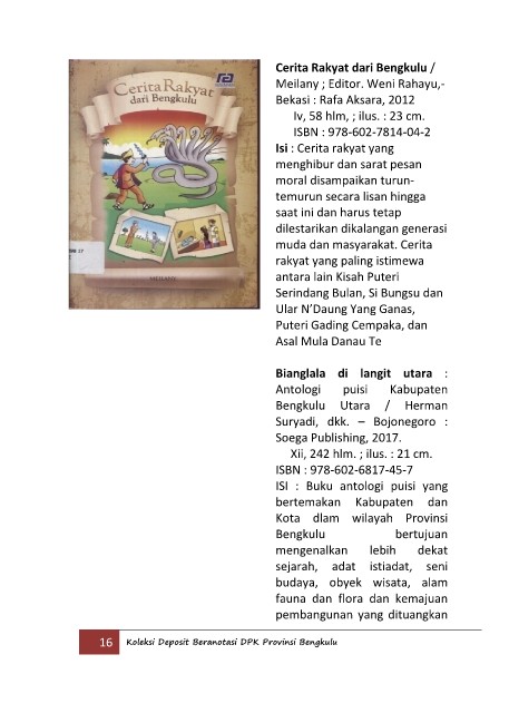 16 Koleksi Deposit Beranotasi DPK Provinsi Bengkulu