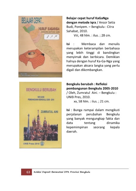 63 Koleksi Deposit Beranotasi DPK Provinsi Bengkulu