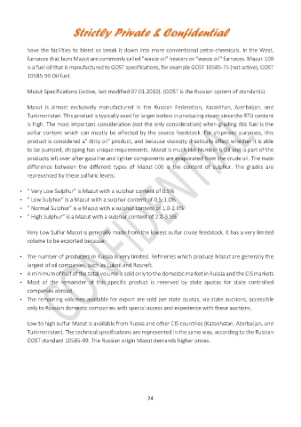 • The number of producers in Russia is very limited. Refineries which produce Mazut are generally the