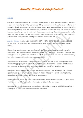 CST 180 is obtained by petroleum distillation. The purpose is to generate heat to generate power for