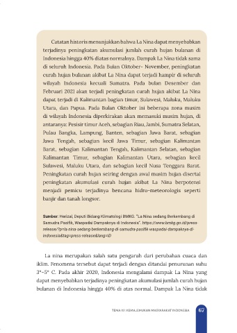 bulanan di Indonesia hingga 40% di atas normal. Dampak La Nina tidak