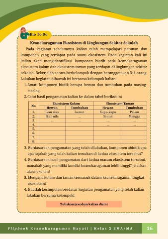 1. Amati komponen biotik berupa hewan dan tumbuhan pada masing-