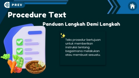 Procedure Text Panduan Langkah Demi Langkah Teks prosedur bertujuan untuk memberikan instruksi tentang bagaimana melakukan atau membuat sesuatu.