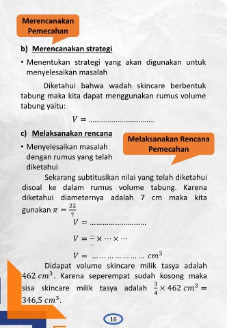 disoal ke dalam rumus volume tabung. Karena