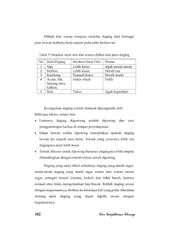 Tabel 3: Struktur serat otot dan warna dilihat dari jenis daging